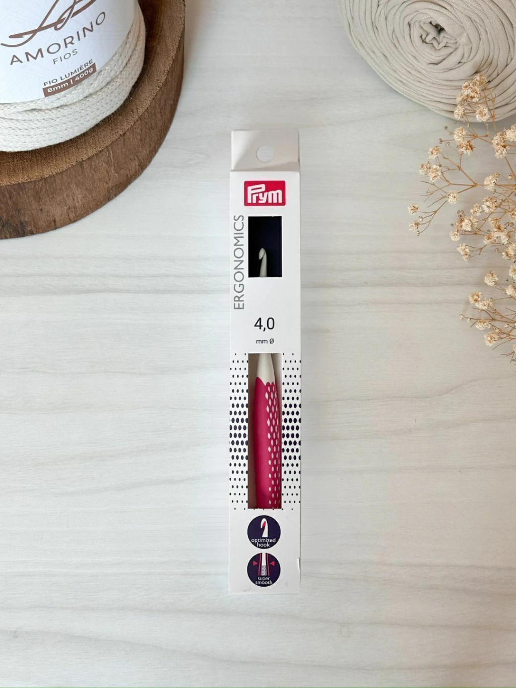 As agulhas prym são extremamente leves e confortáveis e proporcionam pegada ergonômica e horas de crochê mais leve e fácil. Os cabos possuem fina camada de silicone antiderrapante, não impedindo o fio de deslizar por seu longo cabo e indicando a cor da numeração. A cabeça da agulha prym é mais fina e pontuda comparada a outras marcas, garantindo um deslizamento facil e dando muito conforto ao crochetar.