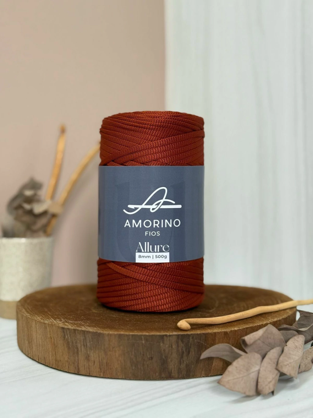 Fio Allure - 8mm - Cobre – 100% poliéster premium para crochê, macio e resistente. Ideal para bolsas, tapetes e decoração. Amorino Fios.