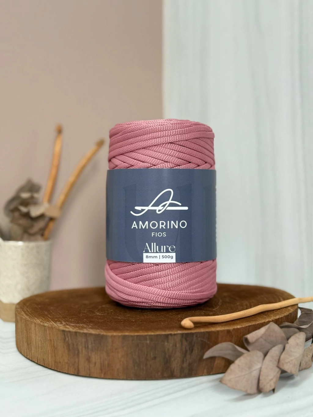 Com brilho elegante e toque macio, o Allure é um fio 100% poliéster, disponível em três espessuras (3mm | 5mm | 8mm), o que permite uma infinidade de criações: de peças delicadas a projetos robustos.